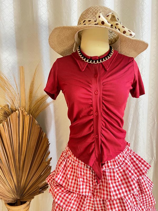Kaos Merah Wanita Kekinian Kaos Bahan Knit Premium Kaos Kemerdekaan ala Korean Style By Keole.Studio Lengan Pendek