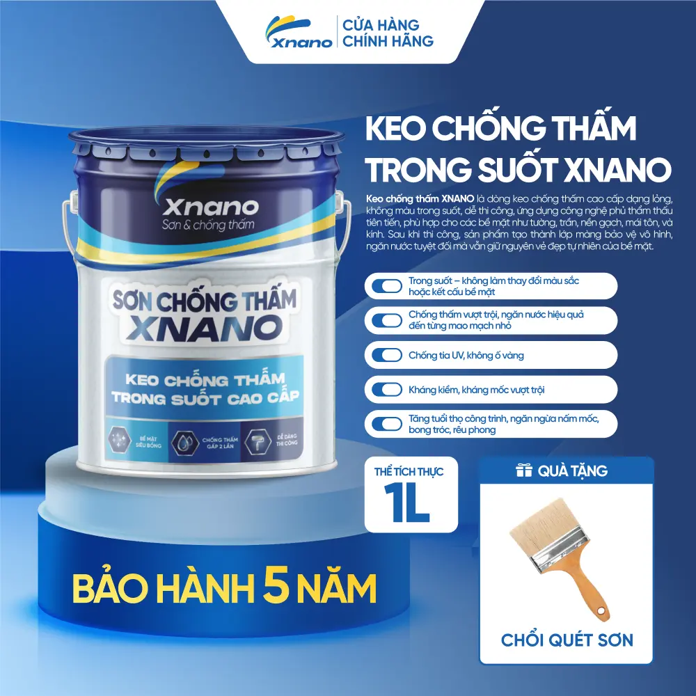 Keo chống thấm trong suốt XNANO 1 LÍT (MẪU NÂNG CẤP) TẶNG KÈM CHỔI, chống thấm sàn nhà, nền nhà, tường, cửa kính không màu bền màu độ phủ cao dễ thi công