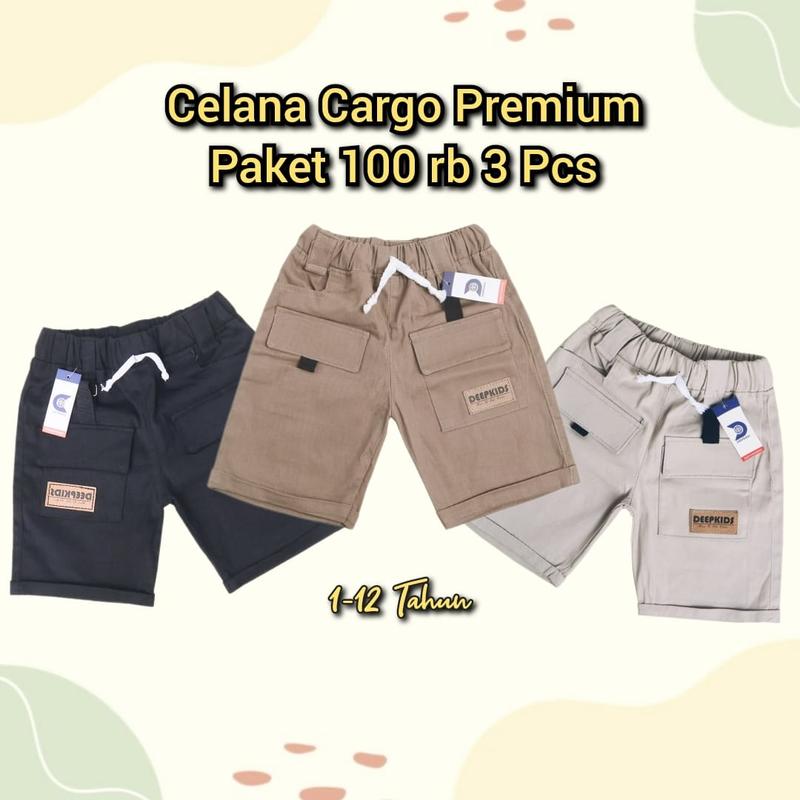 Paket 3 Pcs Celana Cargo Pendek Anak Usia 1-12 Tahun Bahan Katun Twill Premium