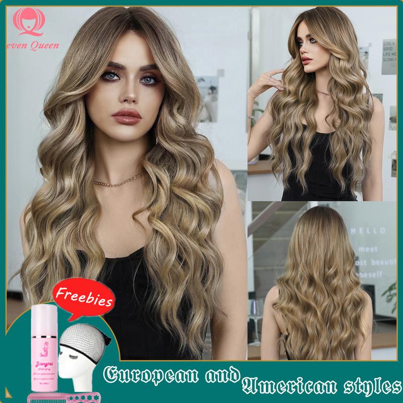 "Seven Queen" Wig 67cm long curly bronze gold head dye European American middle parted big wave hair natural high-temperature polyester high quality fashion smooth matt