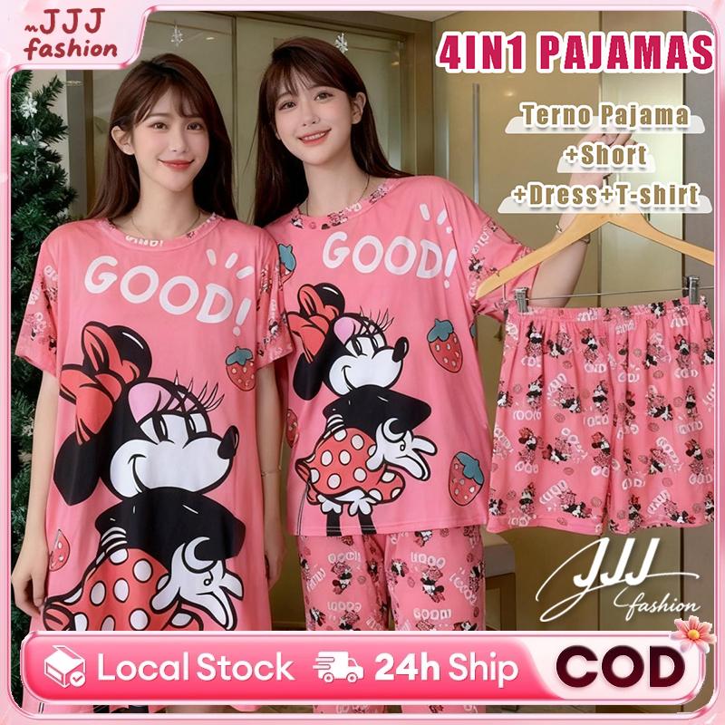 4in1 Korean Fashion Cartoon Cotton Sleepwear Set for women (Terno Pajama+Short+Dress+TSHIRT)