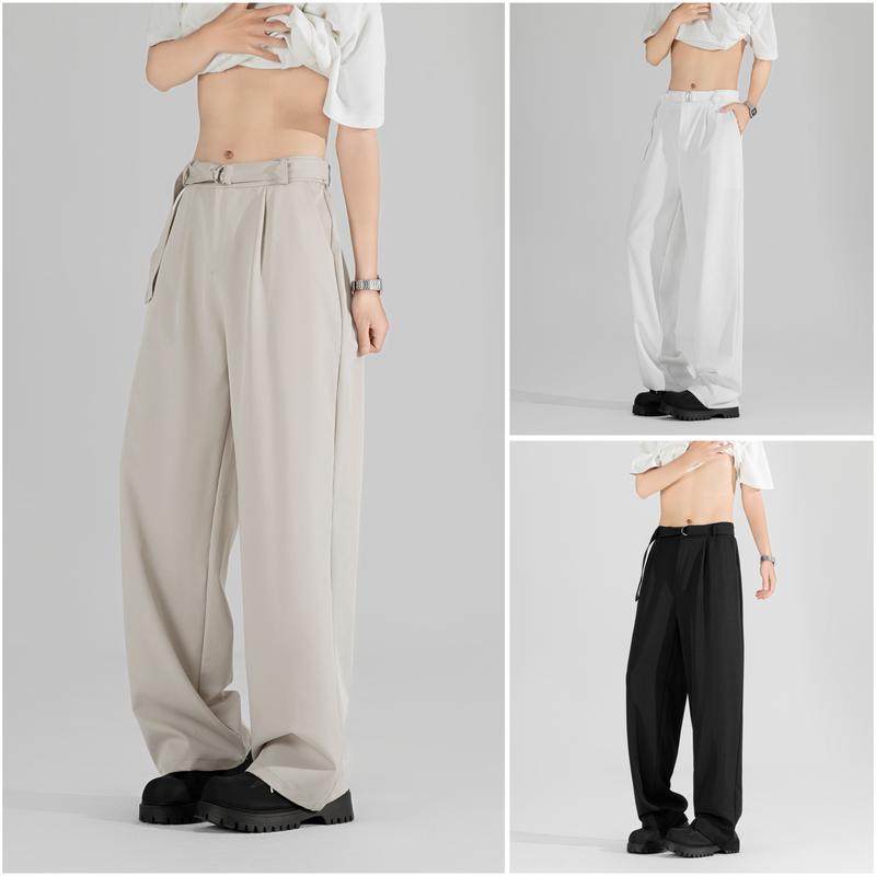 Mannered Men's Wide Leg Pants Partially Garterized Waistline Free Cotton Belt Baggy/Loose Fit Floor Length