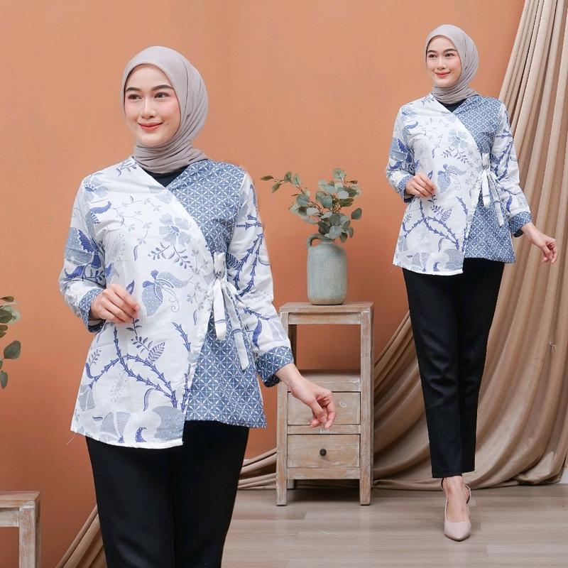 DJOWO - Batik Kerja Wanita Modern Lengan Panjang Tali Samping Blouse Andini Atasan Kantor Terbaru