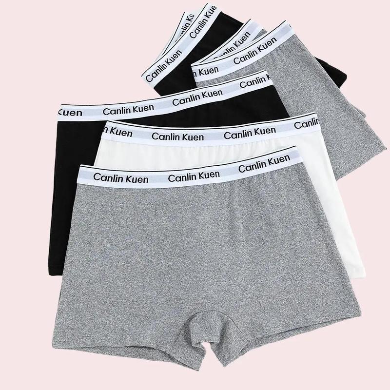 Canlin Kuen กางเกงในผู้หญิงทรงบ็อกเซอร์ ใส่สบาย ระบายอากาศดี แพ็ค 5 ตัว สีดำ เทา และขาว เอวกลาง สำหรับผู้หญิง ใช้ได้ทั้งชุดกีฬาและชุดนักเรียน