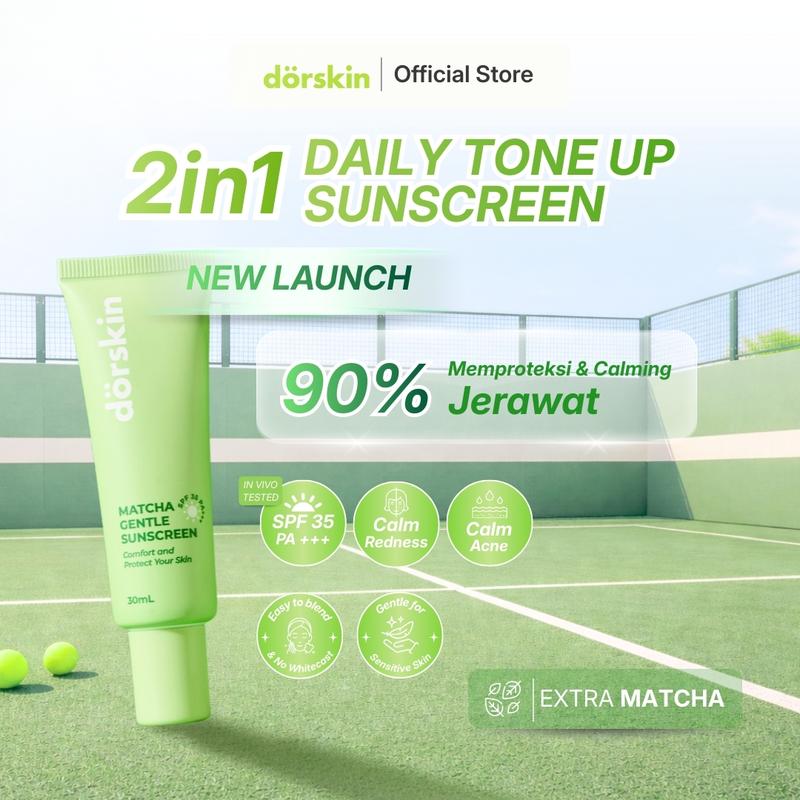 [NEW LAUNCHING] Dorskin Matcha Gentle 2in1 Tone Up Sunscreen SPF 35 PA +++ Acne Prone & All Skin Type 90% Protection & Calming Jerawat